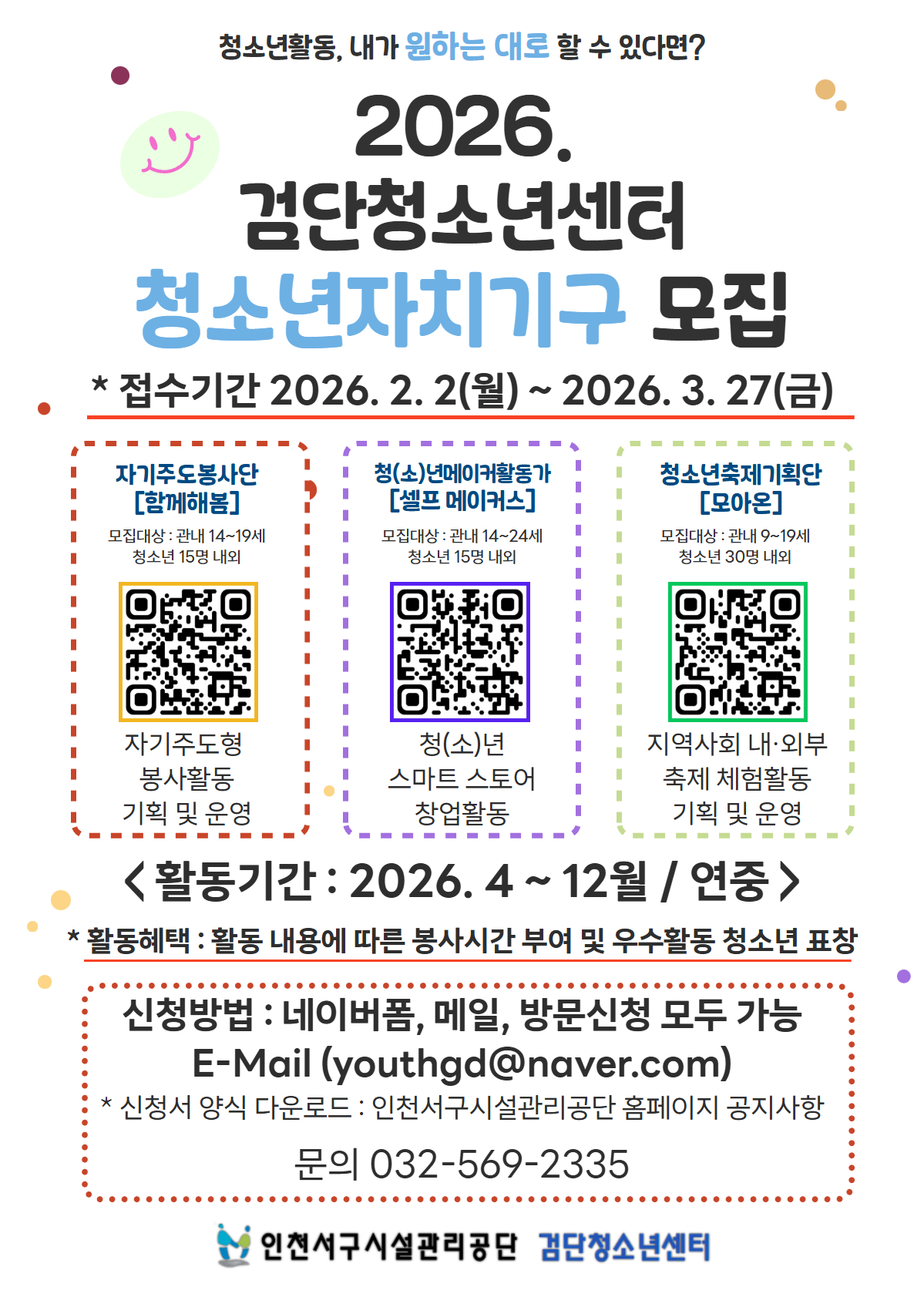 - 문의사항 ☎ 032-569-2335 (검단청소년센터)