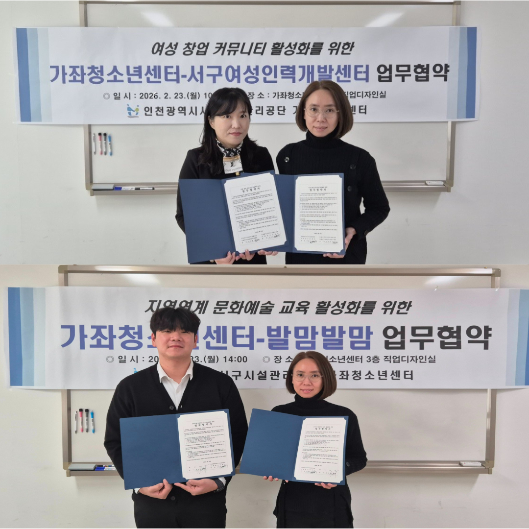 협약에 따라 가좌청소년센터는 여성 창업 커뮤니티 기반의 재능나눔 활동과 문화예술 교육 프로그램을 연계